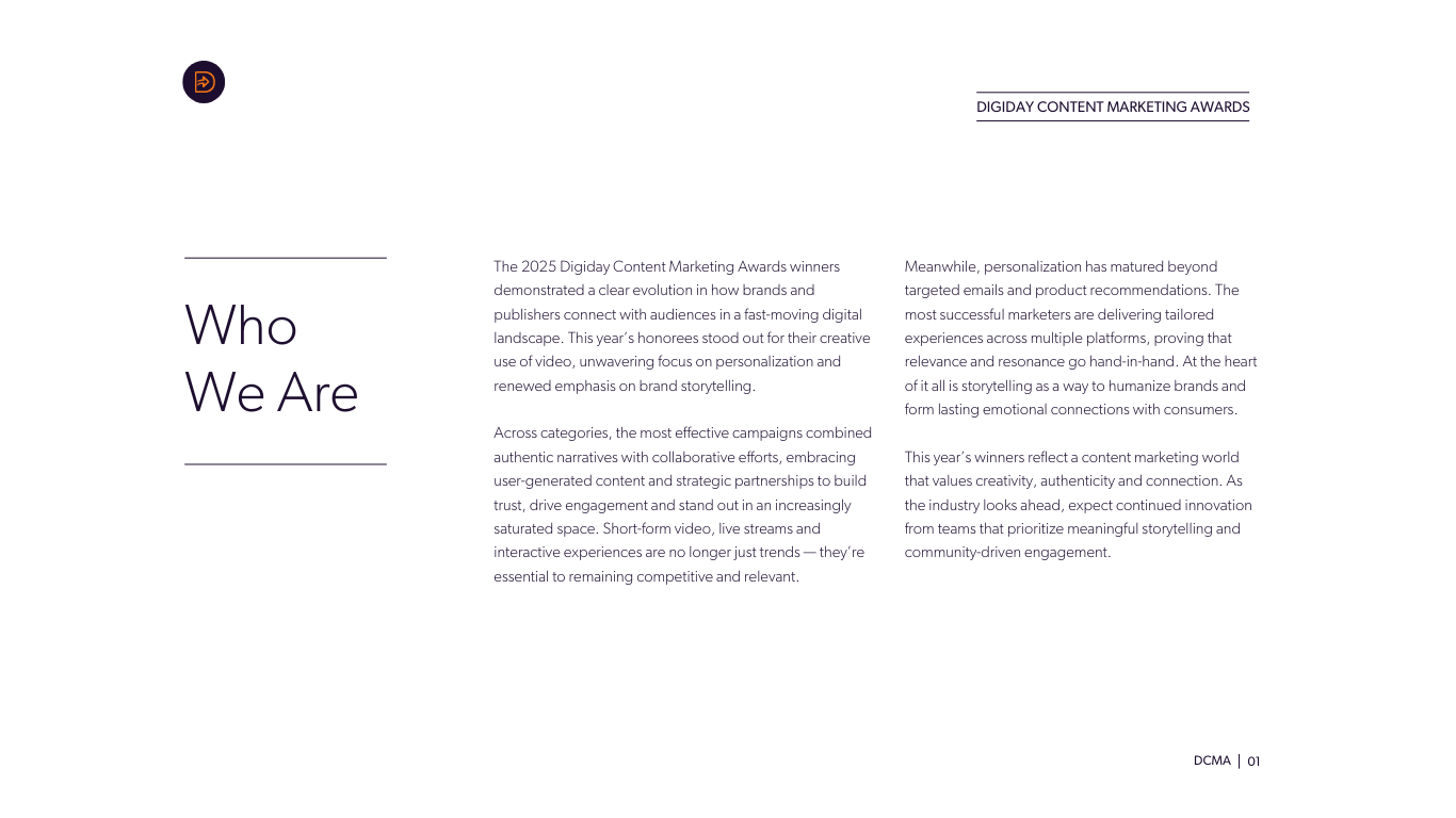 Explore all the 2025 Digiday Content Marketing Awards winners below — including a quick rundown of the campaigns and insights into why they won and what marketing teams can learn from them. Download the complete guide here.