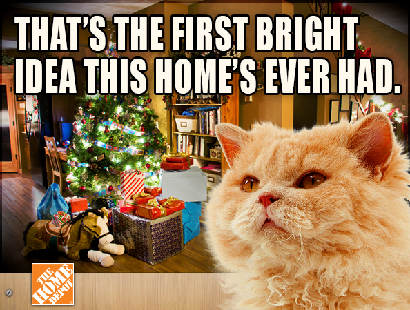 Home Depot and cats? Yeah, I don’t quite get it either. I guess points to them for having an orange cat to go along with its orange logo, but, not really sure how a cat meme serves Home Depot. Unless they’re trying to target the cat lover who may be into fixing up their home. I just don’t see the connection to forced cat memes for this brand.