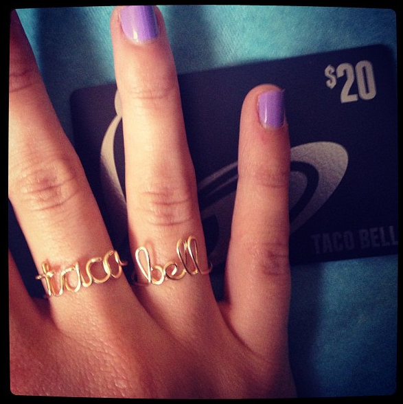 Taco Bell recently created a set of eight custom Taco Bell rings to send to its influential Twitter followers. The ring set included two rings, one that says “Taco” and the other “Bell.” The recipients of the rings happily tweeted and Instagramed pictures of their new rings.