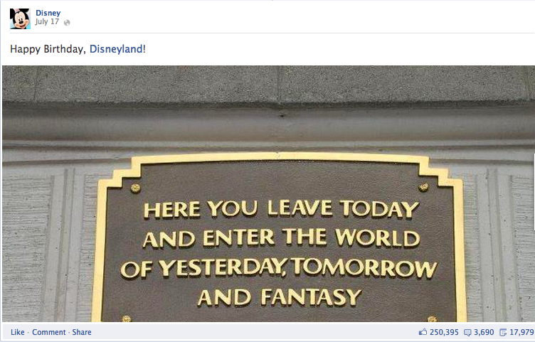 Like the UPS post, this post by Disney evokes an emotion from consumers. Who doesn’t remember their first time and Disneyland?