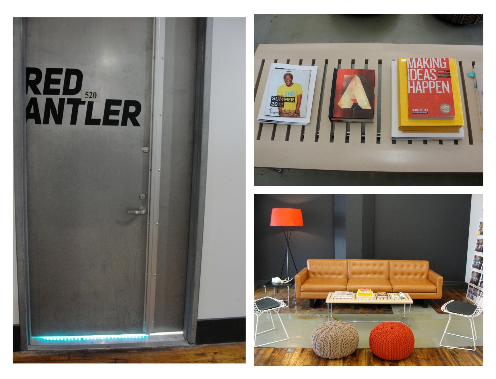 The antler motif is present throughout the office. “The name came about five years ago when my partners Emily Heyward and JB Osborne started the company. They were working with a lot of start-ups and early stage companies so they wanted to find a unique metaphor for growth,” explained Endres. “After a lot of research they found that the cell growth of the antler was one of the fastest in nature — up to an inch and half a day. They added red as a active modifier.”