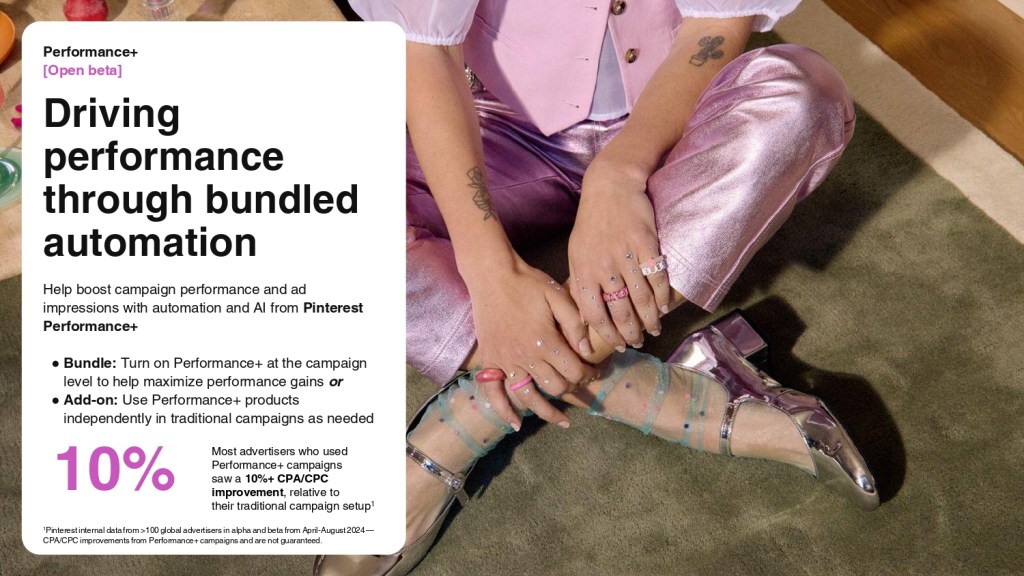 Eight months after quietly rolling out Performance+, Pinterest is now turning up the volume. The platform’s bid to automate more of its ad business is moving from test phase to full-throated sales pitch.