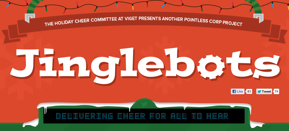 In case you’d rather have robots deliver your holiday wishes this year than have to do it yourself, Viget has created Jinglebots.com. Simply tweet a holiday message including the #Jinglebots hashtag, and one one of the bots will read it instantly via webcam.