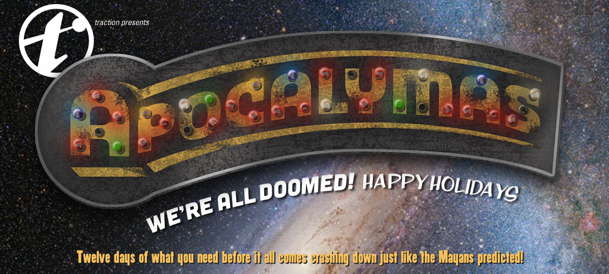 It’s Apocalymas at traction this year: A 12-day calendar packed with everything you need before the world ends on the 21st, just as the Mayan’s predicted.