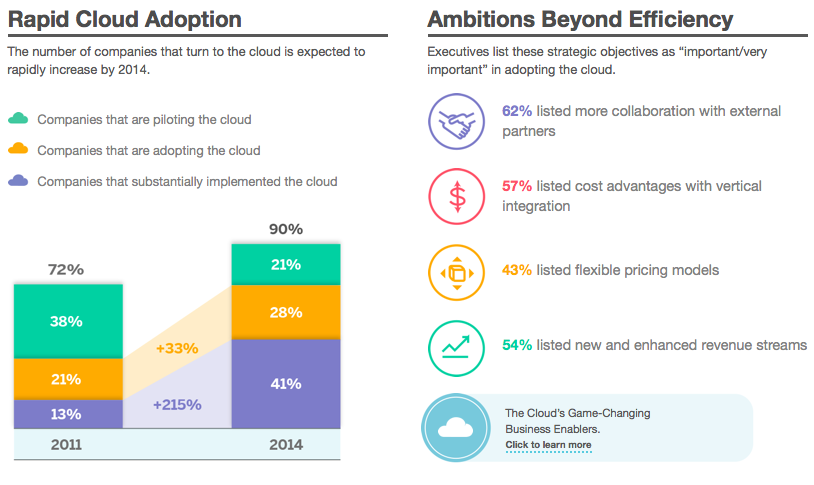 IBM, it can be argued, has become a media company it its own right. With a successful Tumblr, Big Blue is using the Web to deliver its messages via content. In this case, IBM created an infographic on The Atlantic touting the advantages of using the cloud.